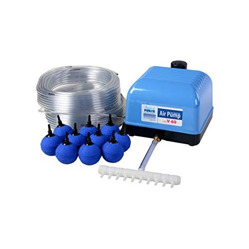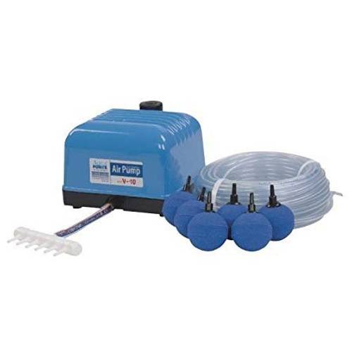 Welche Pumpenleistung für Ihr Teichbecken geeignet ist, hängt in erster Linie von der Größe des Teiches ab. Als grobe Faustregel gilt, dass die pro Stunde hineingepumpte Luft in etwa einem Viertel des Gesamtvolumens des Teiches entsprechen sollte.