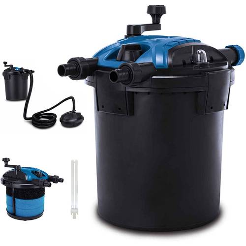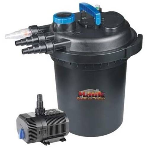 Es kann dann durch einen Bachlauf oder ein Wasserspiel in den Teich zurücklaufen. Druckfilter gibt es mittlerweile einzeln oder als Komplett-Set. Großer Vorteil ist, dass Druckfilter auch unterhalb des Wasserspiegels eingesetzt werden können, da der Pumpendruck durch den Filter gepumpt wird.