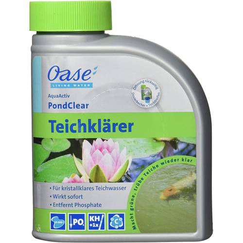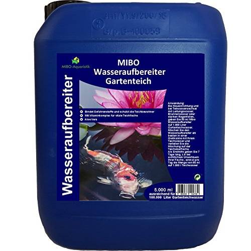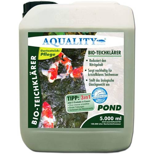 Erhältlich in unterschiedlichen Gebindegrößen, eignet sich Teichklar (zum Beispiel von HEISSNER) für verschiedene Teichgrößen.