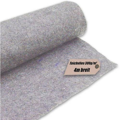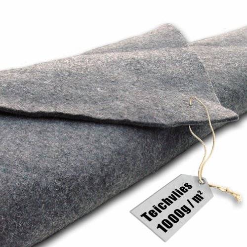 Ein leichtes Teichvlies mit bis zu 300 g/m² ist für weiche und sandige Böden eine gute Wahl. Eine Stärke von 500 g/m² bei einem Teichvlies gilt als Standard für Gartenteiche. Es hält eine normale Belastung auf leicht steinigen Böden aus. Ein Teichvlies zwischen 500 g/m² und 800 g/m² ist empfehlenswert für Schwimmteiche und Koiteiche mit steinigen Untergründen. Für Teiche mit einem felsigen Untergrund oder sehr große Teiche mit einem hohen Wasserdruck benötigen Sie ein Teichvlies mit 1.000 g/m².