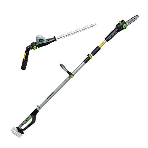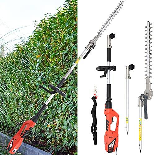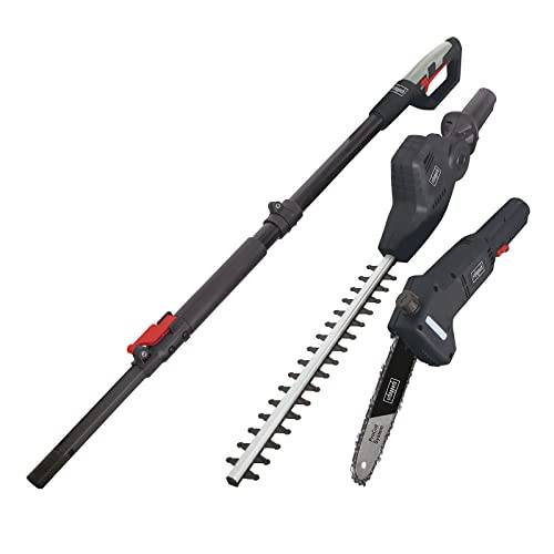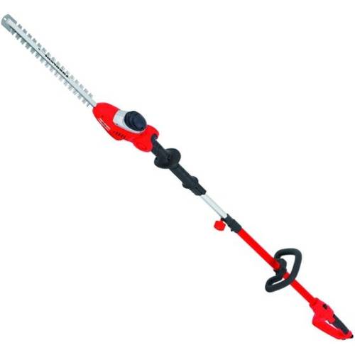 » Mehr InformationenEinige Hersteller werben mit Heckenscheren, die sich neben dem Heckenschneidervorsatz mit verschiedenen Aufsätzen, wie zum Beispiel einem Hochentaster (Akku-Hochentaster, Benzin-Hochentaster, etc.), erweitern lassen. Rein optisch erinnert ein Hochentaster an eine Teleskop Heckenschere, er verfügt jedoch statt eines Schneideschwerts über eine oben angebrachte Kettensäge. Als verlängerte Motorsägen können Hochentaster auch dicke Äste von Bäumen ohne Zuhilfenahme einer Leiter abschneiden.