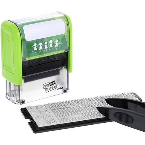 Möchten Sie nur einen Textilstempel anschaffen, mit dem Sie dann unterschiedliche Stempeltexte anfertigen können, empfehlen wir Ihnen ein Textilstempel-Set, mit dem Sie selbst den Text kreieren können. Mit dem Textilstempel von Trodat (Modell 4911) klappt dies beispielsweise sehr gut, heißt es in diversen Textilstempel-Tests im Internet. Dieser Textilstempel enthält Zahlen, Buchstaben, Symbole und Piktogramme, die Sie individuell zusammensetzen können.