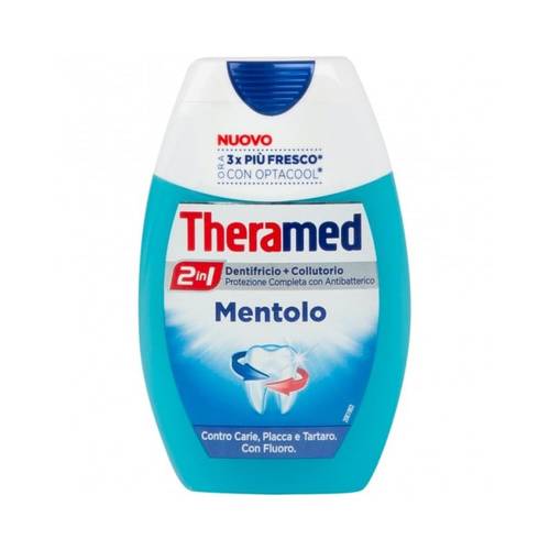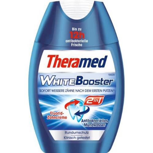 Ja, alle 2-in-1-Zahnpasten von Theramed sind mit einem antibakteriellen Mundwasser im Sortiment erhältlich. Dabei soll auch ein extra Frische-Kick für den Verbraucher erzeugt werden.