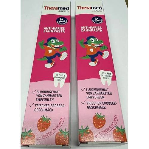 Tipp: Möchten Sie aber für Ihre Kinder eine Theramed-Zahnpasta kaufen, gibt es extra für Kleinkinder entwickelte Theramed-Kinderzahnpasten. Diese enthalten zusätzlich den Schutz vor Zuckersäure und es gibt sie in leckeren Geschmacksrichtungen, wie beispielsweise die Theramed-Junior Erdbeere.