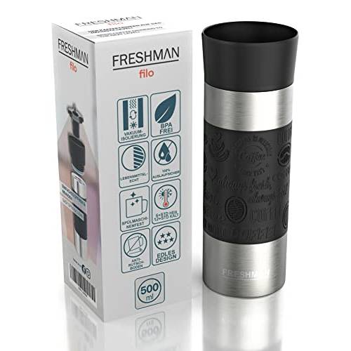 Diverse Thermobecher-500-ml-Tests im Internet zeigen, dass ein Thermobecher mit 500 ml auslaufsicher sein muss.