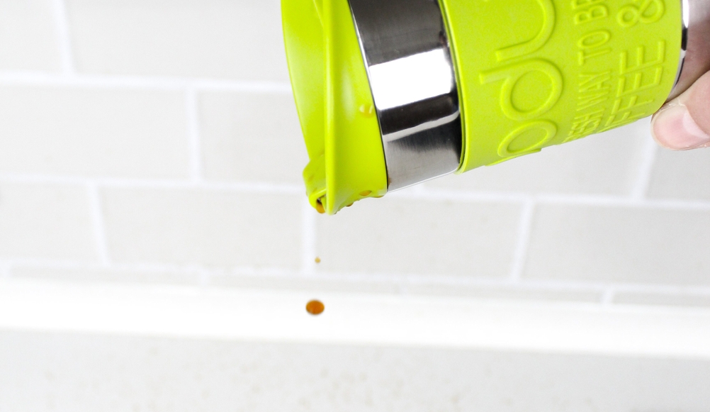 Aus dem Thermo-Trinkbecher von Bodum tropft es gewaltig – die meisten anderen Modelle sind dicht.