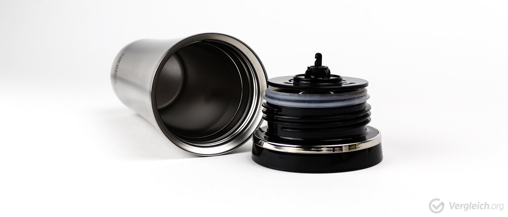 Positiv fiel in unserem Thermobecher-Testbericht die Gummiummantelung auf, die für eine angenehme Haptik und einen sicheren Griff sorgte. Auch die Reinigung war unkompliziert, da der Becher spülmaschinengeeignet ist und sich der Deckel auseinandernehmen ließ.