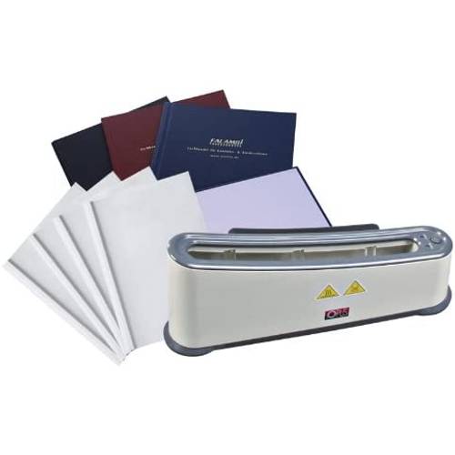 Bindegeräte gibt es in verschiedenen Ausführungen. Bei der Thermobindung werden lediglich die dafür vorgesehenen Thermobindemappen benötigt. Im Gegensatz zu Bindesystemen mit Draht- oder Plastikspiralbindungen müssen die Dokumente nicht gestanzt werden.