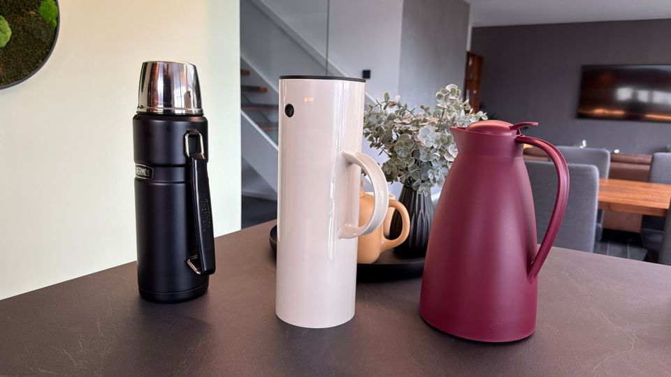 Für unterwegs sind kleine Thermokannen mit abnehmbarem Becher ideal. Zu Hause punkten größere Kannen mit Henkel und Schnabel.