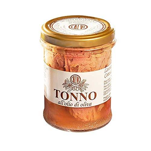 Platz 4 | Guiseppe Calvi Gelbflossenthunfisch in Olivenöl | ca. 15 € | Glaskonserve | beliebte Thunfischsorte | ![]() ![]() | |
