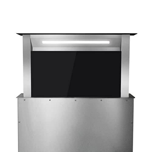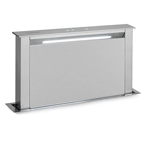Angeboten wird dieser Hauben-Typ von vielen bekannten Herstellern wie beispielsweise Bauknecht, Klarstein und Neff: Versenkbare Dunstabzugshaube aus Edelstahl mit Beleuchtung.