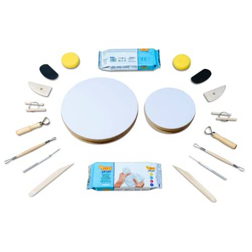 Die Töpferscheiben können Sie mit warmem Wasser und einem Tuch einfach säubern. Jedoch sollten Sie dies direkt nach dem Gebrauch erledigen, da Ton sehr schnell trocknet.