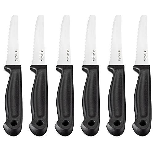 Tomatenmesser mit Kunststoffgriff | rutschfest gestaltet, was eine sichere Handhabung ermöglicht kann in verschiedenen Farben hergestellt werden (z.B. schwarze Tomatenmesser), was ästhetische Vielfalt bietet oft günstiger als Griffe aus anderen Materialien kann mit der Zeit abnutzen oder brechen, insbesondere bei intensiver Nutzung kann bei hohen Temperaturen schmelzen oder sich verformen | in der Regel leicht, was die Handhabung erleichtert