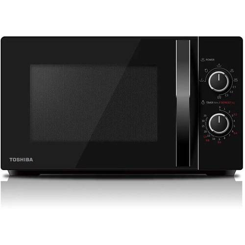 Diese Toshiba-Mikrowelle hat ein Garraumvolumen von 20 Liter und der Drehteller hat einen Durchmesser von 25,5 cm.