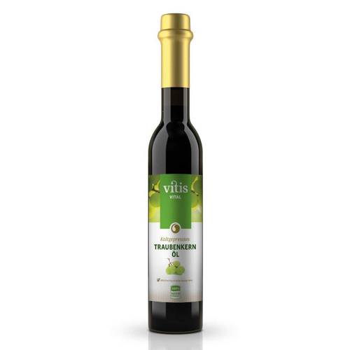 Öl aus Traubenkernen gilt als sehr gesund, da es eine Vielzahl an ungesättigten Fettsäuren – insbesondere Linolsäure – enthält. Diese hat eine besonders positive Wirkung auf die Haut, die Zellerneuerung sowie den Cholesterinspiegel.