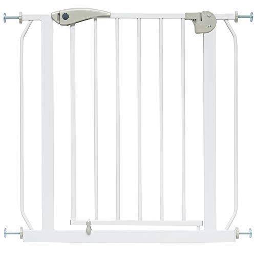Das Geuther-Treppenschutzgitter „Easylock Wood“ aus Holz und Metall punktet mit einer variablen Breite von 80,5 bis 232,5 cm und lässt sich somit individuell an die Begebenheiten Ihres Hauses anpassen.