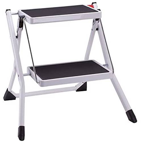 Eine Trittleiter mit 2 Stufen sollte leicht sowie kompakt genug sein, um sie problemlos zu bewegen und zu verstauen.