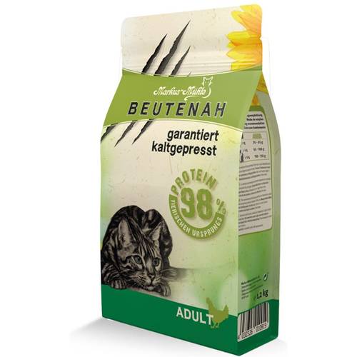 Daneben besteht Trockenfutter für Katzen ohne Getreide in der Regel auch aus pflanzliche Zutaten wie Gemüse, Früchten und Kräutern. Der Grund: Frisst die Katze eine Maus, nimmt sie nicht nur Fleisch, Knochen und Organe zu sich, sondern auch das, was die Maus in ihrem Magen hat: kleine Mengen an pflanzlichen Komponenten. Sie gehören zu einer vollwertigen Ernährung also genauso dazu.
