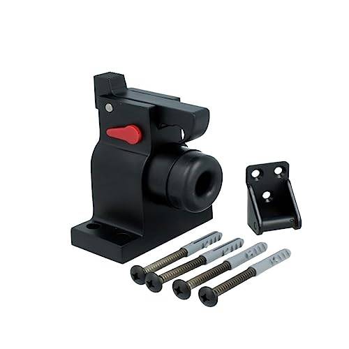 Als Türfeststeller für Wohnmobile werden gerne Feder-Schnäpper verwendet, bei denen der Türfeststeller in eine Halteklammer gedrückt wird. Zum Öffnen muss die Tür mit Kraft aus dem Schnäpper gezogen werden.