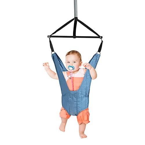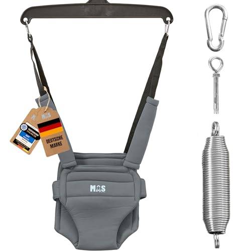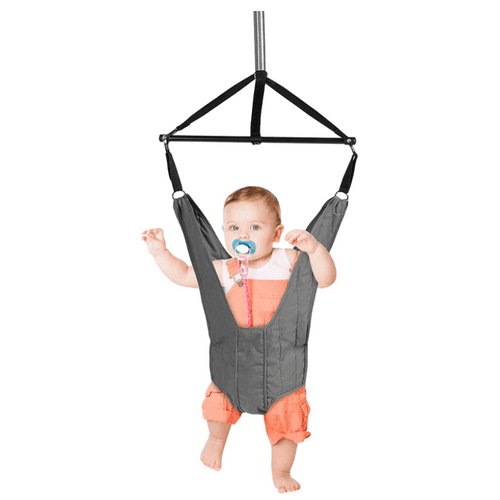 Ein Türhopser ist ein bequemer Babysitz, der oben an einem Türrahmen befestigt werden kann. Dank einer federnden Aufhängung ermöglicht der Türhopser Ihrem Baby, leicht zu hüpfen und zu schwingen, ohne dass es schon laufen können muss. So kann das Kleine spielerisch die Bewegungen üben, die es zum Laufen später einmal braucht. Außerdem genießen es Babys sehr, aus einer aufrechten Haltung ihre Umgebung zu beobachten.