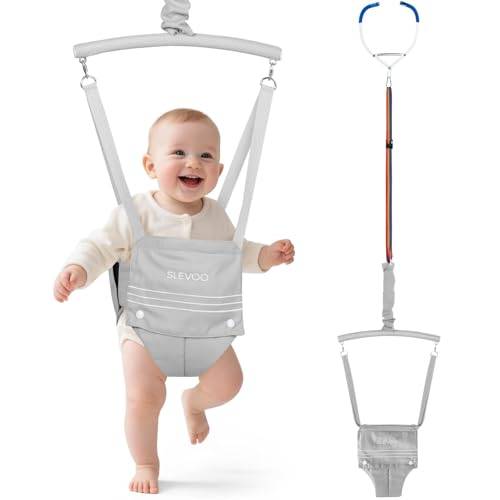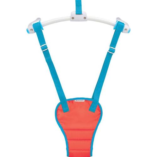 Zur Sicherheit des Babys besitzt die Lauflernhilfe Gurte, mit denen Sie Ihr Kind festschnallen können. Alternativ gibt es Hopser mit einem sehr hohen Rand, der ein Herausrutschen verhindert. Das ideale Alter für Babyhopser ist der Zeitraum von 6 bis 12 Monaten. Dann können die Kleinen bereits den Kopf aufrecht halten und sitzen, aber noch nicht laufen und die neue stehende Perspektive ist für sie besonders reizvoll. Baby Türhopser können für bis zu einer halben Stunde am Stück genutzt werden, bis die ungewohnte Haltung zu anstrengend wird.