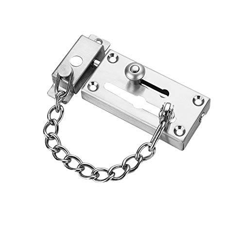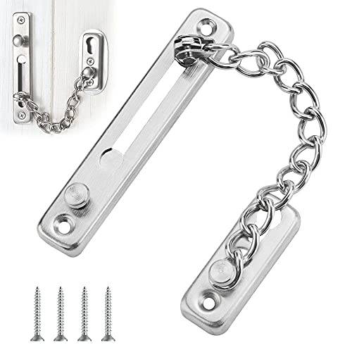 Die beste Türkette beschädigt durch die Montage Ihre Tür nicht. Bei Modellen mit einer langen Kette und einem Ring für den Türgriff können Sie die Halterung im Mauerwerk neben der Tür verankern. So können Sie auch den Türöffnungsgrad variieren, indem Sie die Halterung entsprechend näher oder weiter weg vom Türrahmen montieren. Messen Sie Ihre Platzverhältnisse aus, bevor Sie eine Türkette kaufen.