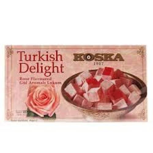 Die türkischen Süßigkeiten von Sebahat in der klassischen 400-g-Schachtel mit Rosengeschmack („Gül aromalı Lokum“) basieren auf Zucker, Stärke und natürlichem Aroma. Laut unserer Recherche ist für diese Sorte die Verwendung von Rosenöl oder -aroma typisch.