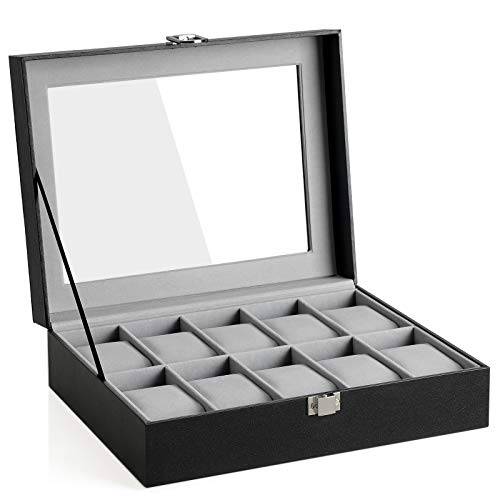 Eine Uhrenbox sollte abschließbar sein und über ein Sichtfenster aus Echtglas verfügen. Diese Art des Sichtfensters verleiht der Box ein optisches Upgrade in Sachen Hochwertigkeit. Es gibt die Behältnisse in verschiedenen Ausführungen.