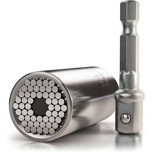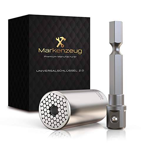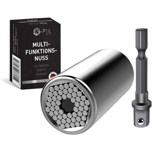 Dabei kann sie zwar nicht jede Größe genauso präzise und fest greifen wie ein exakt abgemessener Schraubenschlüssel, aber mit der Universalnuss haben Sie in einem Element zahlreiche Werkzeuge vereint, das die verschiedensten Schrauben beim Basteln, Werkeln und Reparieren festziehen und lösen kann.