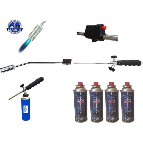 Ausstattung | 5 m Schlauch | Brennerdüse 60 mm, 5 m Schlauch | Brennerdüse 60 mm, 5 m Schlauch, Sparflammgriff | Brennerdüse 60 mm, 5 m Schlauch | ergonomischer Griff und 4 Gaskartuschen inklusive | 60 cm Brennerrohr mit Brennerstütze, 5 m Schlauch | Brennerdüse 60 mm, 5 m Schlauch | 4,5 m Schlauch, ergonomischer Griff |