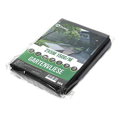 Viele Unkrautvliese mit 150 g sind 2 m breit. Für kleinere Flächen können Sie auch ein 1 m breites Unkrautvlies wählen. Gartenvliese, die 2 m breit sind, können Sie auch problemlos zerschneiden. Für extra große Gärten gibt es Unkrautvliese, die 5 m breit sind.