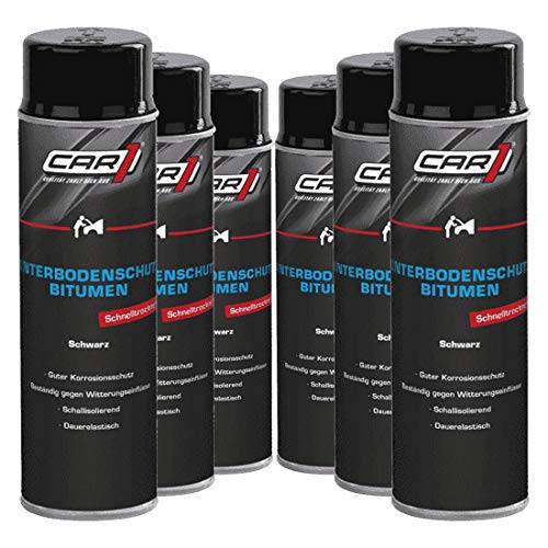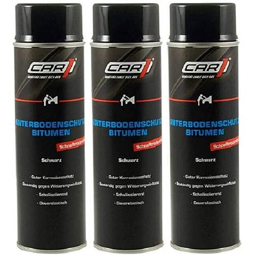 Sprühen Sie den Korrosions- und Steinschlag-Unterbodenschutz in einem Abstand von 20 bis 30 cm für ca. 30 bis 40 Sekunden in einer gleichmäßigen Bewegung auf. Schütteln Sie zwischendurch die 500-ml- oder 1-l-Dose kräftig. Je nach Ergiebigkeit benötigen Sie für einen kompletten Unterboden ca. 2 bis 4 Liter Unterbodenschutz-Mittel. Lassen Sie das Auto nach der Behandlung 20 Minuten trocknen.