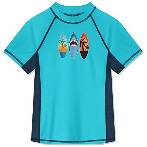 UV-Shirts für Jungen gibt es in vielen verschiedenen Designs – von einfarbig-schlicht bis hin zu bunten Mustern und Motiven.