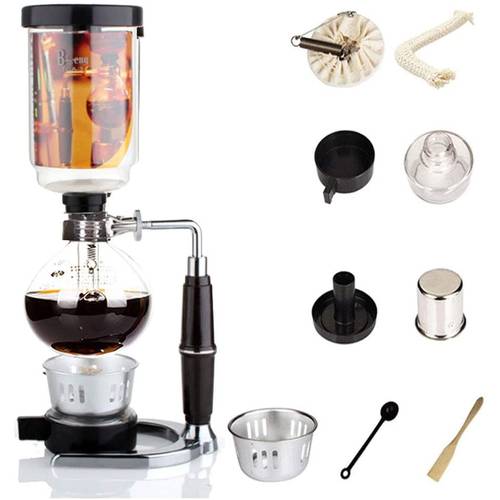 Das gilt ebenso für die elektrischen Vakuum-Kaffeebreiter wie den Bodum PEBO oder das Modell von YUCHENGTECH. Hierbei erhitzt eine Heizplatte das Wasser und startet somit den Brühprozess. Ein maßgeblicher Vorteil von elektrisch betriebenen Geräten ist oft eine integrierte Warmhaltefunktion, die den Kaffee nach Abschluss des Brühvorgangs auf Temperatur hält. Aber auch regulierbare Gas- oder Spiritusbrenner wie beispielsweise der Bodum-Vakuum-Kaffeebreiter mit Korkgriff haben diese Möglichkeit. Hierbei gilt lediglich zu beachten, dass sich bei mit offener Flamme betriebenen Geräten gegebenenfalls Rußrückstände am unteren Glaskolben bilden können, die aber mit heißem Wasser oder bei starker Rußbildung mit einem Kaminglasreiniger entfernt werden können.