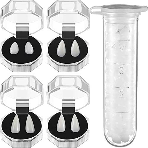 Grundsätzlich wird zwischen Vampirzähnen zum Ankleben und Vampirzähnen zum Aufstecken unterschieden. Vampirgebisse werden ganz einfach auf die Zähne „aufgesteckt“. Sie finden aber auch Eckzähne zum Aufstecken. Diese werden mittels Abformmasse (Thermoplastik) auf den eignen Zähnen befestigt. Ganz ohne Kleben funktioniert es aber nicht immer. So finden Sie Vampirzähne, die mit kleinen Klebeperlen geliefert werden. Mit dem ungiftigen Kleber können Sie die Eckzähne an Ihren natürlichen Zähnen sicher befestigen.