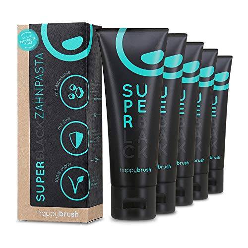 Platz 2 | Happybrush Superblack Zahnpasta | ca. 19 € | besonders gut | besonders hoch | ![]() ![]() | |
