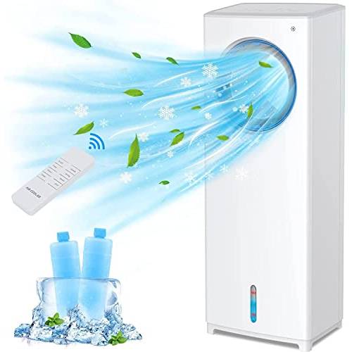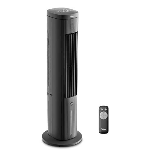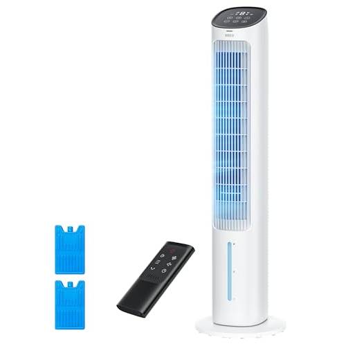 Hier sehen wir einen Koenic-Turm-Ventilator mit Wasserkühlung, der drei Geschwindigkeitsstufen und vier Windmodi bietet.