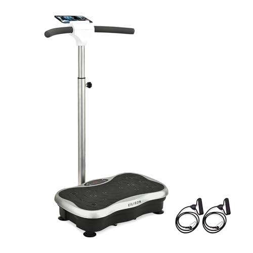 Die Übungsvielfalt auf einer Vibrationsplatte mit Säule ist laut Online-Tests äußerst abwechslungsreich.