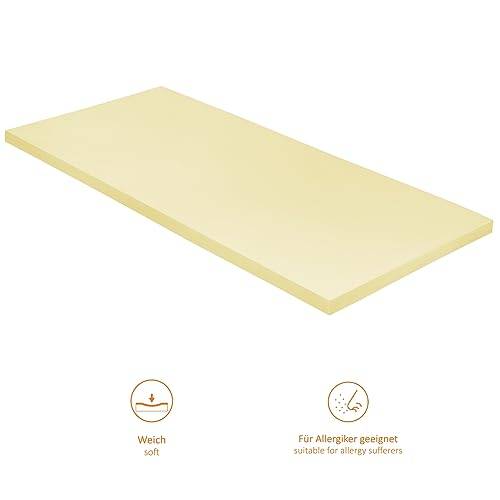 Möchten Sie den besten Visco-Topper mit 90 x 200 cm kaufen, empfehlen wir Ihnen ein Raumgewicht von 50 – 55 kg/m³. Bei einem 90 x 200 cm großen Matratzentopper aus Visco-Schaum verspricht dieses Raumgewicht eine Haltbarkeit von etwa 8 Jahren, was auch der maximal empfohlenen Lebensdauer einer Matratzenauflage entspricht.