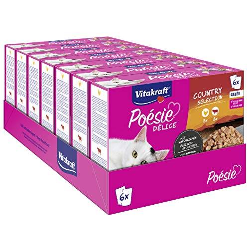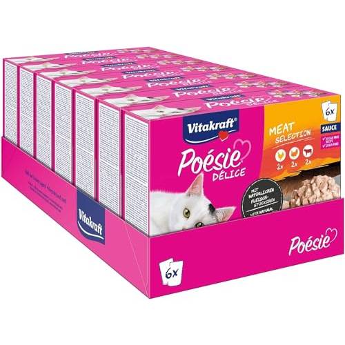 Das Poésie-Futter ist ein Nassfutter für Katzen, welches es in verschiedenen Geschmacksrichtungen gibt. Einige kommen ausschließlich mit Huhn aus, andere, wie beispielsweise das Vitakraft-Poésie-Delice-Katzenfutter, beinhalten zusätzlich Gemüse.