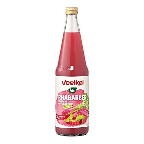 Bei diesem Voelkel-Saft „RHABARBER“ handelt es sich um Fruchtnektar, der aus 64 % Rhabarbersaft, natürlichem Mineralwasser, Rohrohrzucker und 1 % Holunderbeersaft besteht.