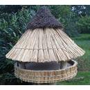Vogelfutterhäuser mit Reetdach gibt es wahlweise in rund, eckig und oval. Ab einem Maß von ungefähr 80 cm gilt ein Vogelhaus mit Reetdach als sehr groß und bietet Platz für besonders viele Vögel. Die höchste Stelle am Vogelhaus stellt der First dar. Dieser ist oftmals mit Heide verstärkt.