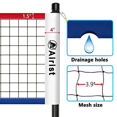Netze für Beachvolleyball sind – je nach Größe des Spielfeldes – zwischen 8,5 und 9,5 Meter lang und 1 Meter hoch. Ist das Spielfeld 16 x 8 m groß, wird der Volleyball in der Regel über das etwas kleinere Beach-Volleyball-Netz geschmettert. Bei einer Spielfeldgröße von 18 x 9 m kommen hingegen die meist tragbaren Volleyballnetze mit 9,5 m Länge zum Einsatz.