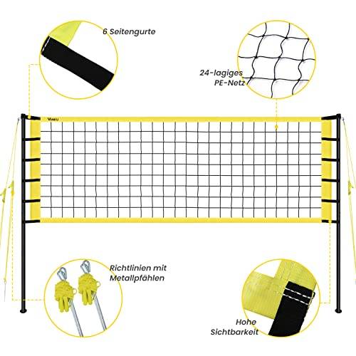 Befestigt werden die meisten Volleyballnetze laut Tests im Internet mit einer 4- bzw. 6-Punkt-Aufhängung sowie Spannschnüren auf jeder Seite, die das Volleyballnetz mit den Pfosten verbinden und für einen sicheren Stand und genügend Stabilität sorgen.