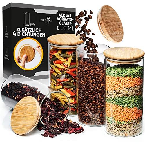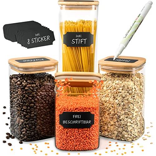 Mit Vorratsdosen aus Glas können Sie Ihre Produkte in die Gläser füllen und damit gleich Ihre Küche organisieren. Für einen noch besseren Überblick lassen sich die Aufbewahrungsgläser für die Küche auch beschriften.