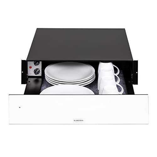 Eine Wärmeschublade sieht auf den ersten Blick wie jede andere Schubladen in Ihrer Küche aus. Sie lässt sich ein- und ausfahren, hat ein Volumen, das zwischen 20 und 50 Litern liegt und eine Breite von 60 cm oder 45 cm. Welche Größe ideal ist, hängt davon ab wie viele cm die Nische misst. Außerdem ist in der Regel aus Edelstahl gefertigt. Die Besonderheit der Wärmeschublade ist eine Heizplatte aus Hartglas, die sich am Boden der Wärmeschublade befindet. Denn dank dieser Heizplatte können Sie die Wärmeschublade auf Temperatur bringen. Üblicherweise lassen sich Wärmeschubladen auf 30 bis 80 Grad Celsius erwärmen. Eine Wärmeschublade ist also ein Gerät zum Warmhalten von Speisen und Geschirr.