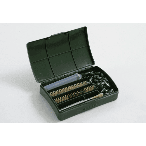 Ein Waffenreinigungsset wird meist in einem Koffer oder einer Reißverschlusstasche geliefert. Beide Aufbewahrungsmöglichkeiten sorgen für die sorgfältige Organisation der Reinigungsutensilien.
