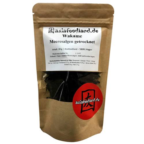 Aber auch getrocknet kann Wakame verarbeitet werden, dann allerdings eher in flockiger Form.