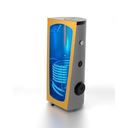 Wenn Sie sich für einen Standard-Warmwasserspeicher entscheiden, hat dieser in den meisten Fällen einen Wärmetauscher. Dabei handelt es sich um ein spiralförmiges Rohr im Inneren des Wasserspeichers, das erhitzt wird. Anschließend gibt es die Hitze an das Wasser ab, die Wärme wird also ausgetauscht.
