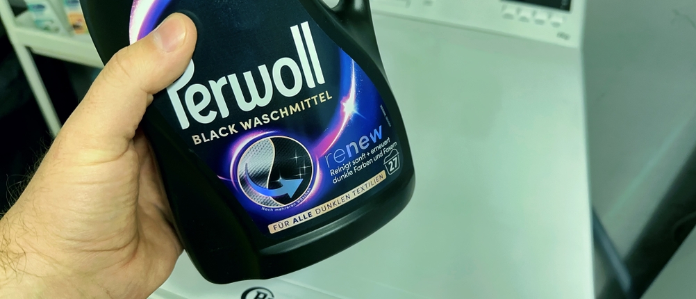 Das Waschmittel Perwoll Renew Schwarz zeigte im Test mit schwarzer Wäsche eine gute Gesamtleistung: Die Farben wirkten nach dem Waschen gleichmäßiger, besonders ausgeblichene Stellen passten sich sichtbar besser ins Gesamtbild ein. Auch das Hautgefühl überzeugte – selbst ohne zusätzlichen Weichspüler fühlte sich die Kleidung angenehm weich und geglättet an.